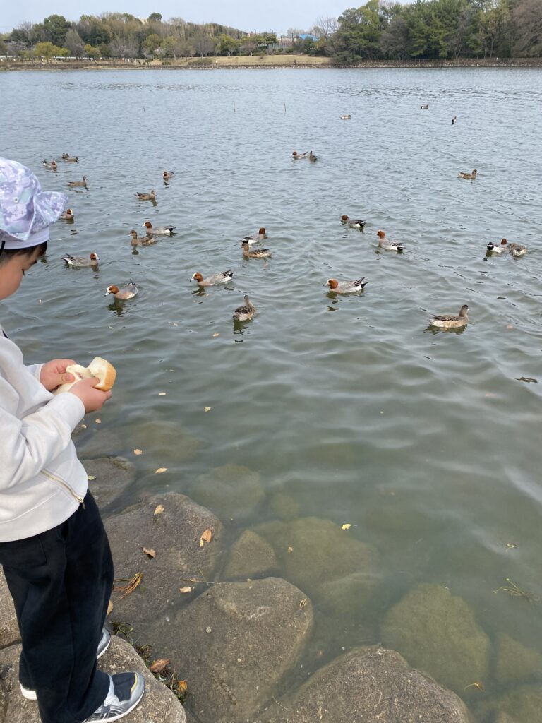 さらに、お兄ちゃんは知らない人にパンをもらって、池の鳥にエサをあげていてびっくり。